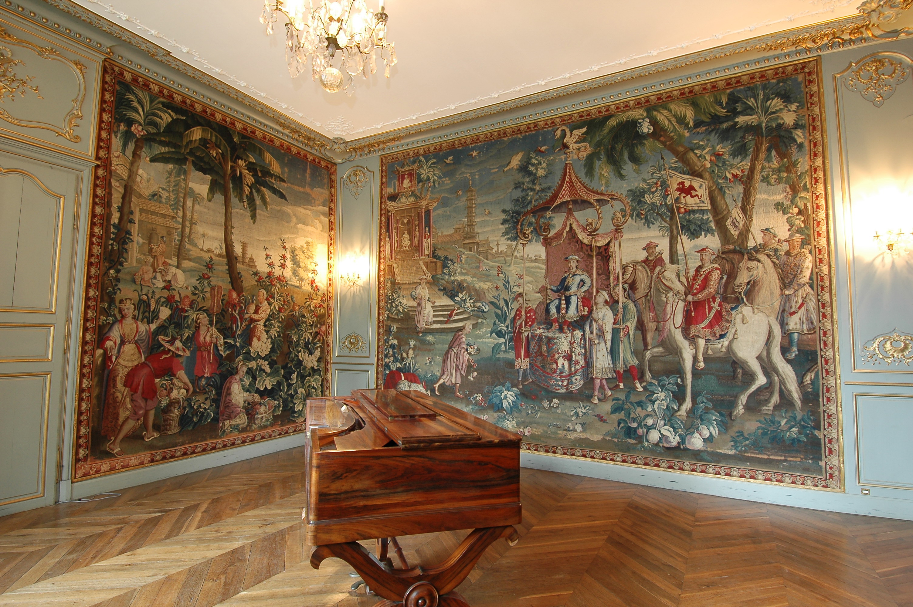 Aujourd’hui, le salon de musique a conservé son précieux décor de tapisseries du XVIIIe siècle, de la manufacture de Beauvais, illustrant quelques épisodes de la vie de l’Empereur Kangxi (ensemble classé au titre des « Monuments Historiques » en 1951).
